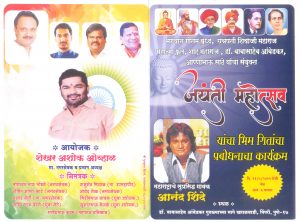 पिंपरी (Pclive7.com):- भगवान गौतम बुद्ध, छत्रपती शिवाजी महाराज, महात्मा फुले, शाहू महाराज, डॉ. बाबासाहेब आंबेडकर, लोकशाहीर अण्णाभाऊ साठे यांच्या संयुक्त जयंती महोत्सवाचे आयोजन करण्यात आले असल्याची माहिती माजी नगरसेवक व जयंती महोत्सवाचे आयोजक शेखर ओव्हाळ यांनी प्रसिद्धी पत्रकाव्दारे दिली आहे.