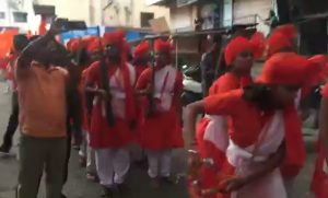 पिंपरी (Pclive7.com):- चिंचवड येथे विश्व हिंदू परिषदेच्या शोभायात्रेत तलवारींचा नंगा नाच करण्यात आला. तसेच मुलींनी एअरगनमधून फायर केले. या प्रकरणी रविवारी (दि.२) मध्यरात्री निगडी पोलिस ठाण्यात गुन्हा दाखल करण्यात आला. हा प्रकार रविवारी सायंकाळी पाच ते बाराच्या दरम्यान अकुंश चौक ते ठाकरे मैदान दरम्यान घडला.