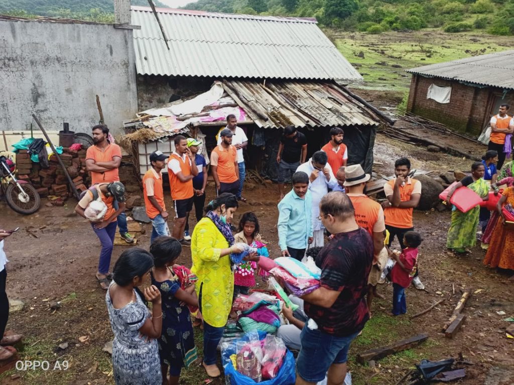 मावळ (Pclive7.com):- निसर्ग चक्रीवादळामुळे मावळ तालुक्यातील लोणावळा परिसरातील वनक्षेत्रात फणसराई, वनाटी, उदेवाडी व राजमाची या अतीदुर्गम भागातील वननिवासी ठाकर, कातकरी बांधवांच्या घरांची झोपड्यांची गोठयांची प्रचंड हानी झाली होती. घरांवरील छत उडुन गेले होते, घरातील भांडी, कपडे व अन्य साहित्य वादळाच्या तडाख्याने दरीत उडून गेले होेते. अशात अन्नधान्य भिजल्यामुळे खाण्याची बिकट अवस्था झाली होती. अनेकांचे संसार मोडुन पडले. या नैसर्गिक आपत्तीमुळे उद्भवलेल्या संकटात विश्व हिंदु परिषद बजरंग दलाचे कार्यकर्ते कर्तव्यबुद्धीने पुढे आले. चिंचवड येथील इस्कॉन कृष्णभक्त मंडळ सोबत सहभागी झाले. निसर्ग चक्रीवादळाच्या दुसर्याचं दिवशी कार्यकर्त्यांनी परिसरात जाऊन झालेल्या हानीची पाहणी केली व बांधवांना धिर दिला. सोबत लगोलग वनाटी व फणसराई येथील सर्व कुटुंबांस आवश्यक शिधा संच पुरविण्यात आले. दि ५ जुन ते ९ जुन सलग ५ दिवस कार्यकर्त्यांनी पीडित बांधवांची पडलेली, विस्कटलेली घरे बांधून देण्यासाठी सुमारे ३५ मोठ्या ताडपत्र्या, मुबलक प्रमाणात दोर, तार असे नवीन साहित्य दानशूर व्यक्ती व संस्थांच्या सहकार्यातून उभे केले. श्रमदान करून घरे, झोपड्या पुन्हा निवासायोग्य करून दिल्या. प्रत्येक कुटुंबास दोन ब्लँकेटस, माता भगिनींस साड्या, लहान मुलांना नवे कपडे, खाऊ, पुरुष मंडळींना कपडे पुरवून परिसरात औषध फवारणी करून स्वच्छता करण्यात आली.