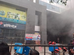 पिंपरी (Pclive7.com):- रहाटणी येथील शिवार चौकातील रेनबो प्लाझा या इमारतीत गुरुवारी दुपारी साडेचारच्या सुमारास अचानक आग लागली. पाच मजली या इमारती हॉटेल तसेच विविध व्यावसायिक कार्यालय आहे. या कार्यालयांमध्ये काही कर्मचारी व नागरिक अडकले. त्यांना सुखरूप बाहेर काढण्यासाठी अग्निशामक दलाच्या जवानांकडून अशा व्यक्तीचे प्रयत्न सुरू आहेत.