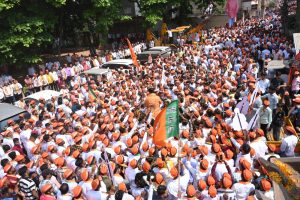 प्रचंड शक्तीप्रदर्शन करीत उमेदवारी अर्ज दाखल; सुमारे ४० हजार नागरिकांचा पदयात्रेत सहभाग