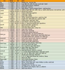 विविध भागातील कार्यक्रम स्थान खालील प्रमाणे –