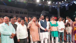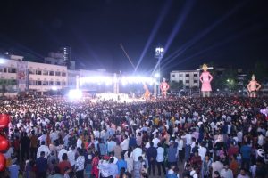 पिंपरी (Pclive7.com):- पिंपरीत माजी नगरसेवक संदीप बाळकृष्ण वाघेरे यांच्या वतीने आयोजित भव्य ७० फुटी रावणदहन आणि मनोरंजन कार्यक्रम मोठ्या उत्साहात आणि शिस्तबद्ध वातावरणात पार पडला. हजारो नागरिकांनी या कार्यक्रमाला उपस्थित राहून पारंपरिक सणाचा आनंद घेतला.